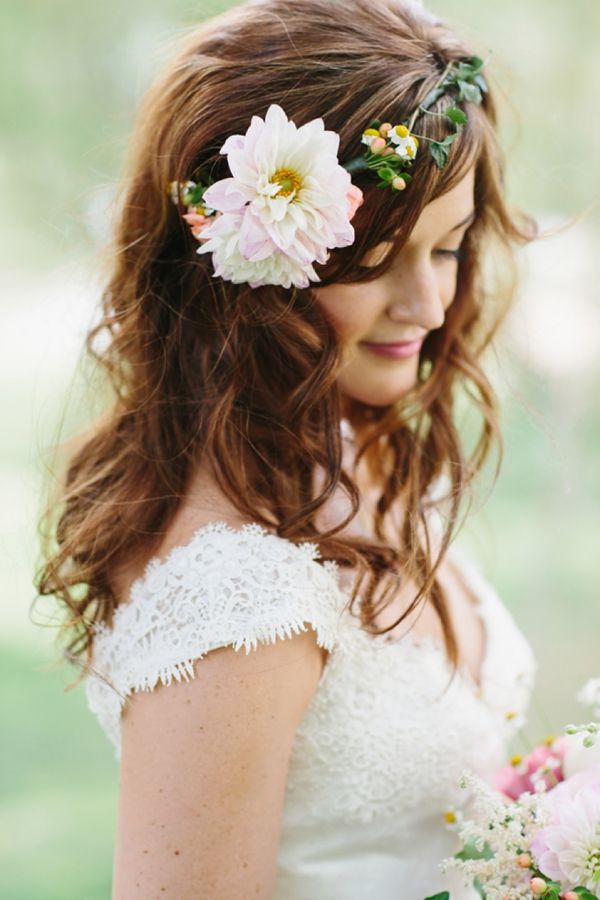 Over the past year we’ve seen more and more brides and bridesmaids try the SO of-the-moment and SO bohemian chic look of wearing flowers in their hair. And I don’t mean just one bloom pinned into your French twist, ladies! Florists across the country have honed their skills to create stunning floral crowns that add a big WOW factor to your wedding day style. Interested in making this a DIY project? Try it out ahead of time using one of these floral crown tutorials from Honestly WTF, a faux floral crown by Kelli Murray , or a sweet and simple smaller crown by Bleubird. Here are some of our favorite looks. Will you be wearing flowers in your hair on your wedding day?